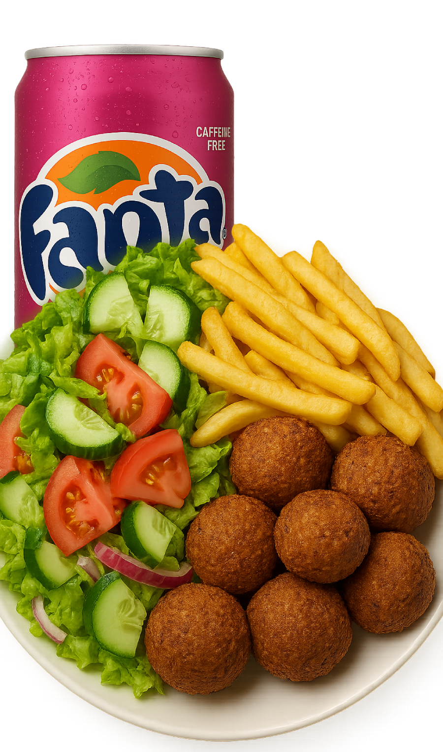 Assiette Falafel, Sauces au choix, Servi avec frites et boissons de 33CL