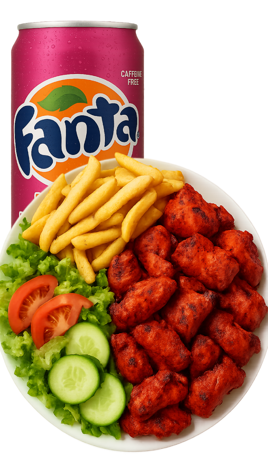 Assiette Tandoori, Sauces au choix, Servi avec frites et boissons de 33CL